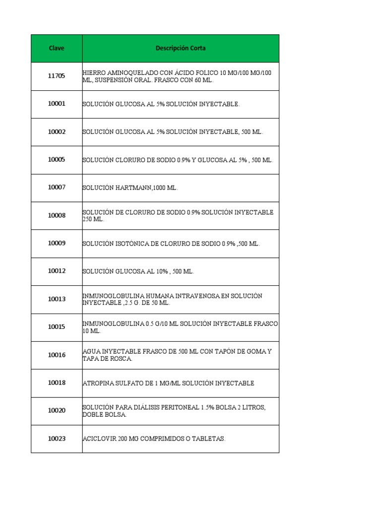 Clave Descripción Corta