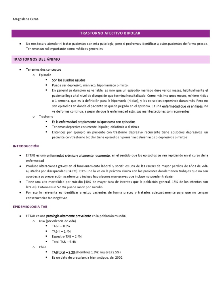 El TAB es una enfermedad crónica y altamente recurrente, en el sentido que los episodios se van repitiendo en el curso de la