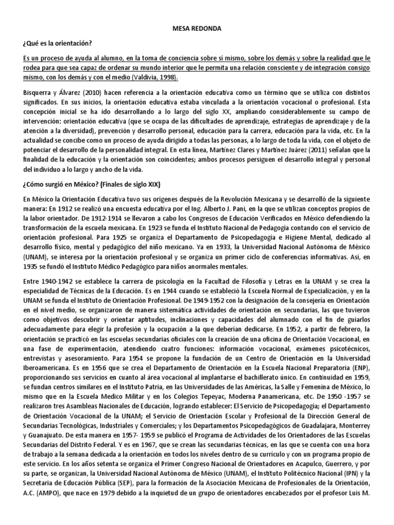 En México la Orientación Educativa tuvo sus orígenes después de la Revolución Mexicana y se desarrolló de la siguiente