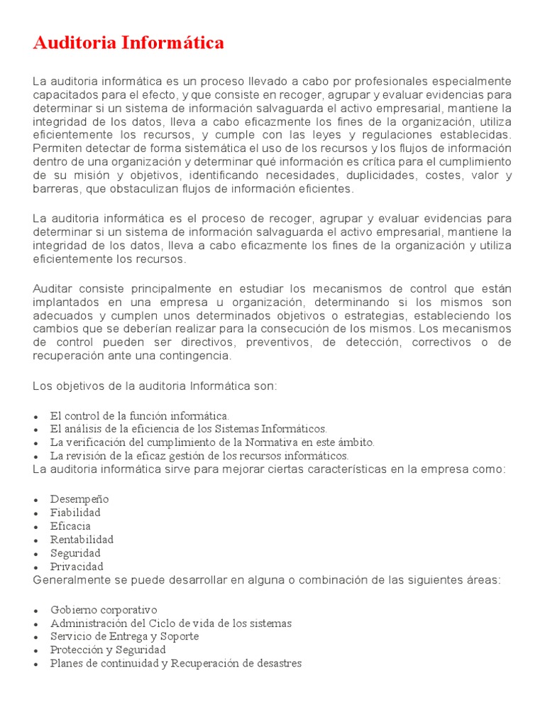 En la realización de una auditoria informática el auditor puede realizar las siguientes