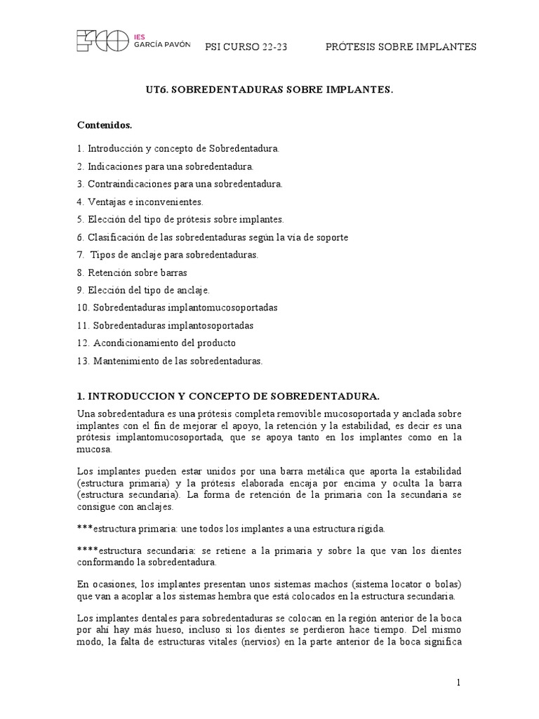 6. SOBREDENTADURAS SOBRE IMPLANTES.