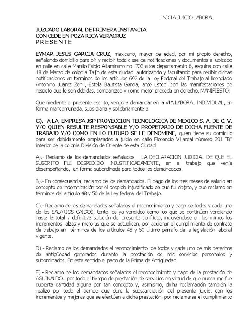INICIA JUICIO LABORAL