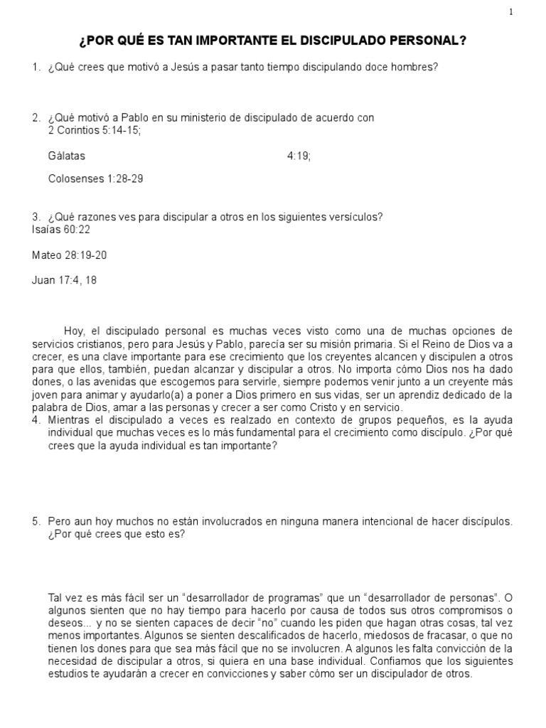necesidad de discipular a otros, si quiera en una base individual. Confiamos que los siguientes