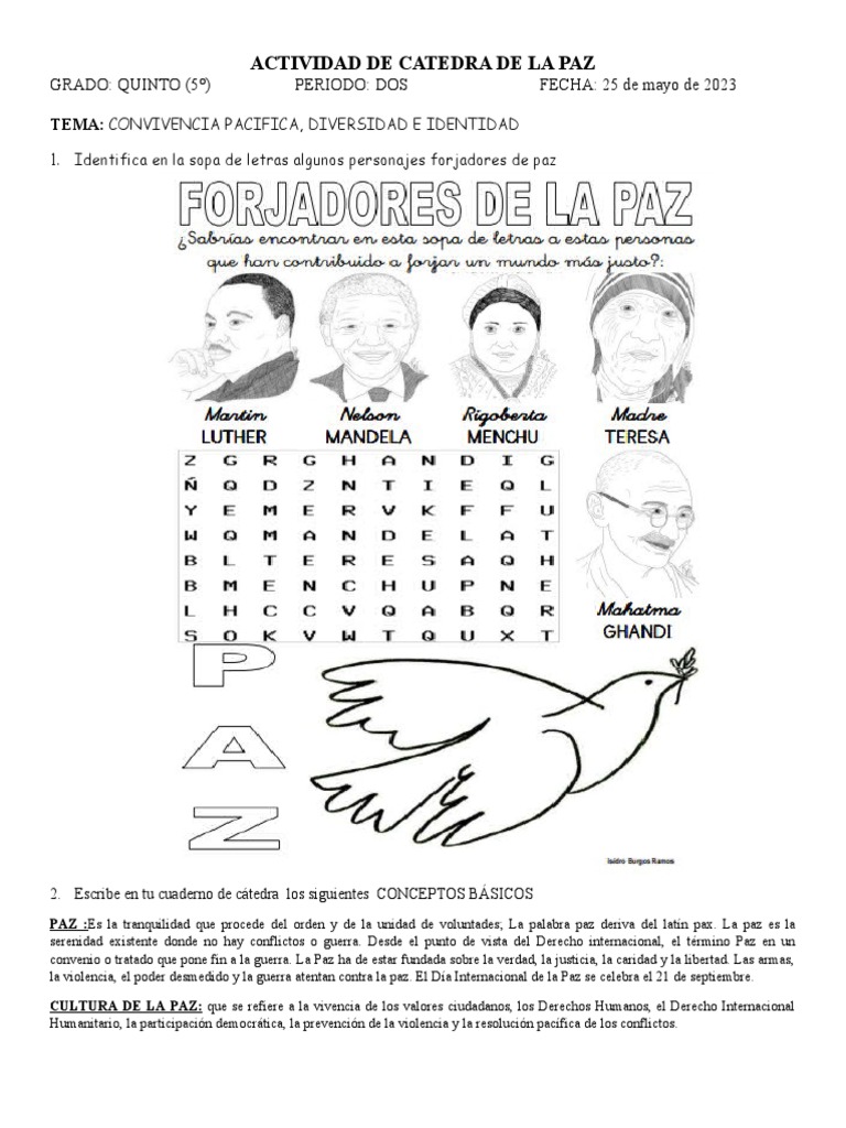 1. Identifica en la sopa de letras algunos personajes forjadores de paz