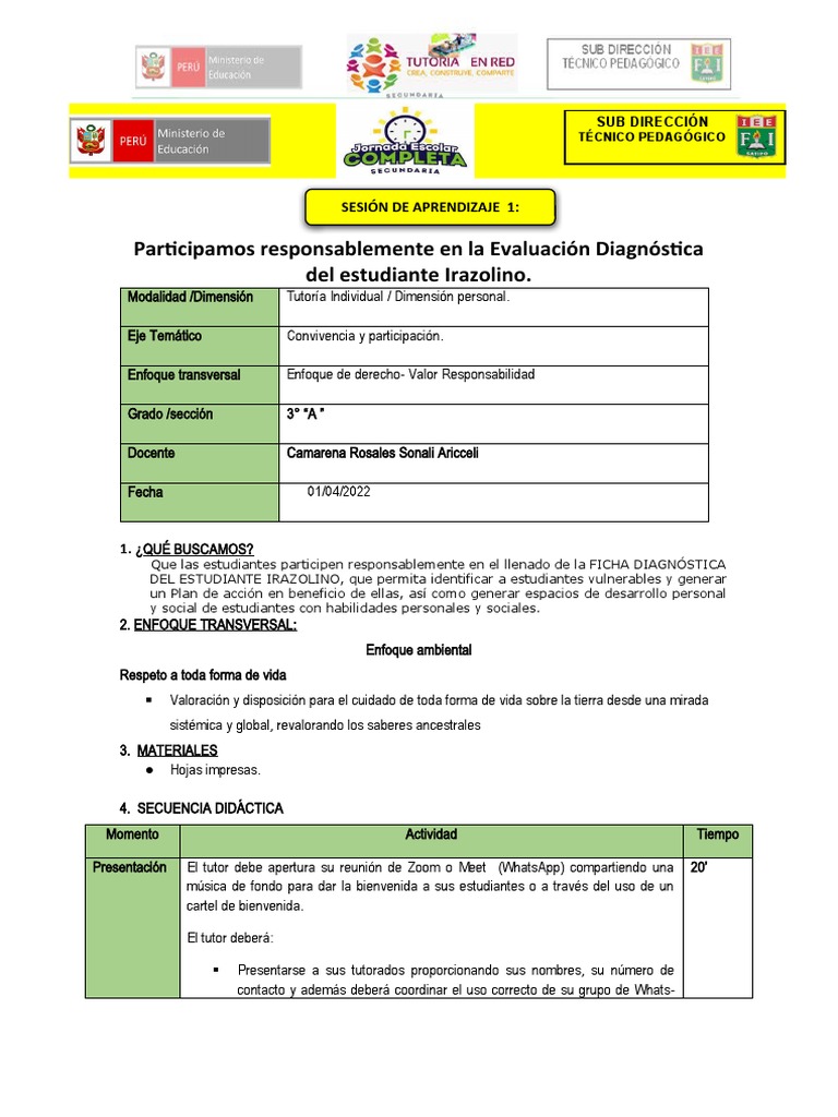 Presentación El tutor debe apertura su reunión de Zoom o Meet (WhatsApp) compartiendo una 20’