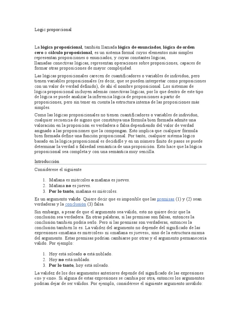 la lógica proposicional, incluyendo ejemplos de su uso en el lenguaje natural y los