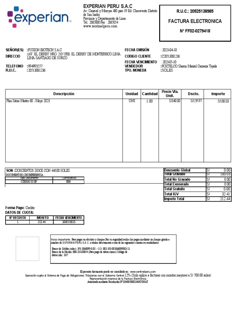 SEÑOR(ES) :FUXION BIOTECH S.A.C FECHA EMISIÓN : 2023-04-10
