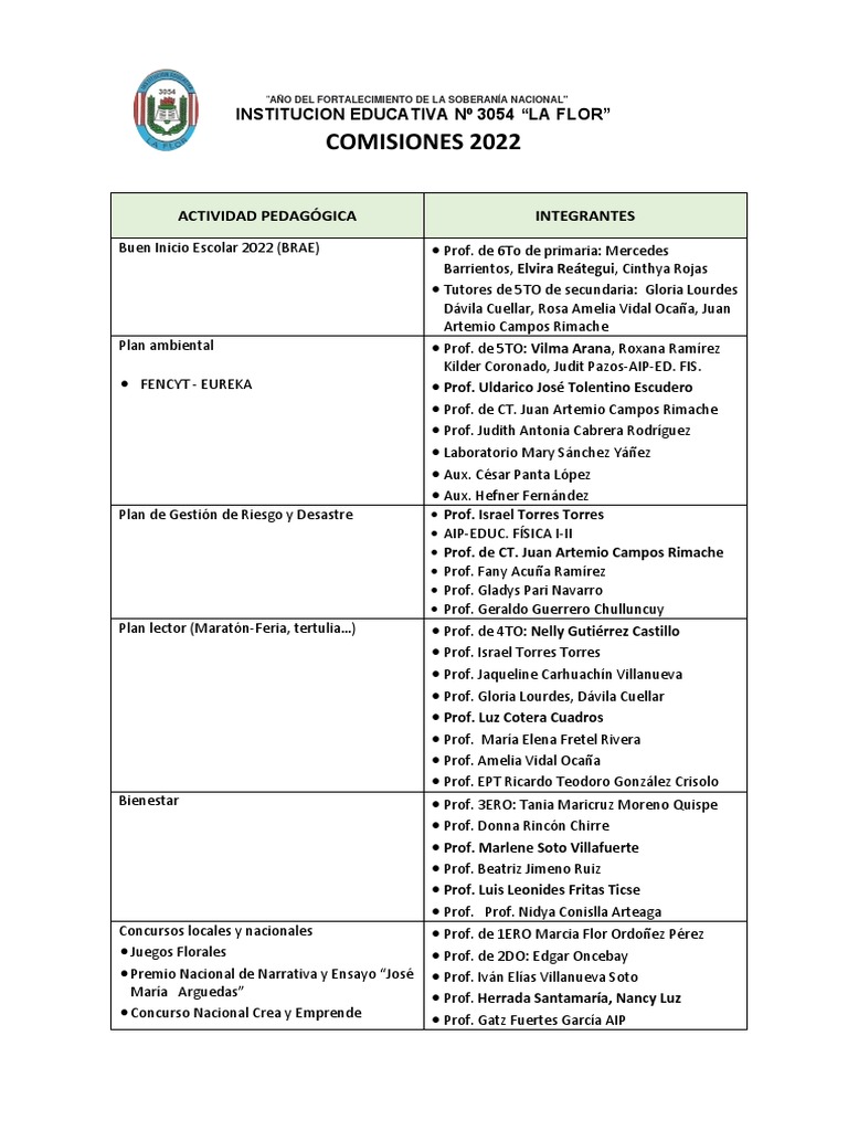 INSTITUCION EDUCATIVA Nº 3054 “LA FLOR”