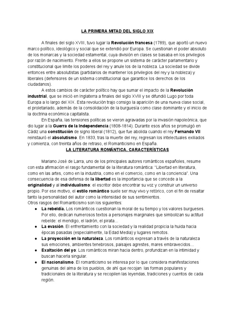 LA PRIMERA MITAD DEL SIGLO XIX