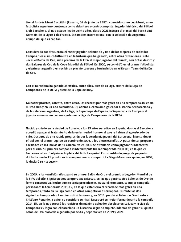 Lionel Andrés Messi Cuccittini (Rosario, 24 de junio de 1987), conocido como Leo Messi, es un