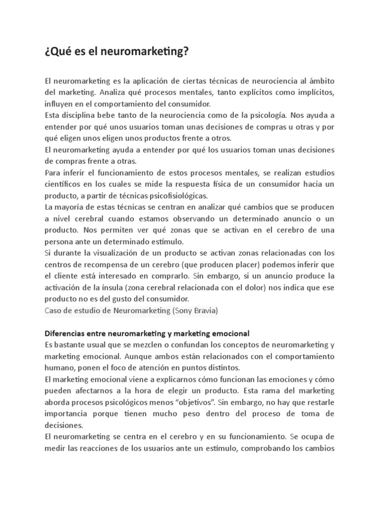 ⦁ El neuromarke,ng se basa en estudios neurocienDficos y combina conceptos