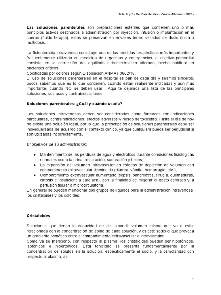 Taller U y E - Sc. Parenterales - Vanesa Albornoz - 2023.-