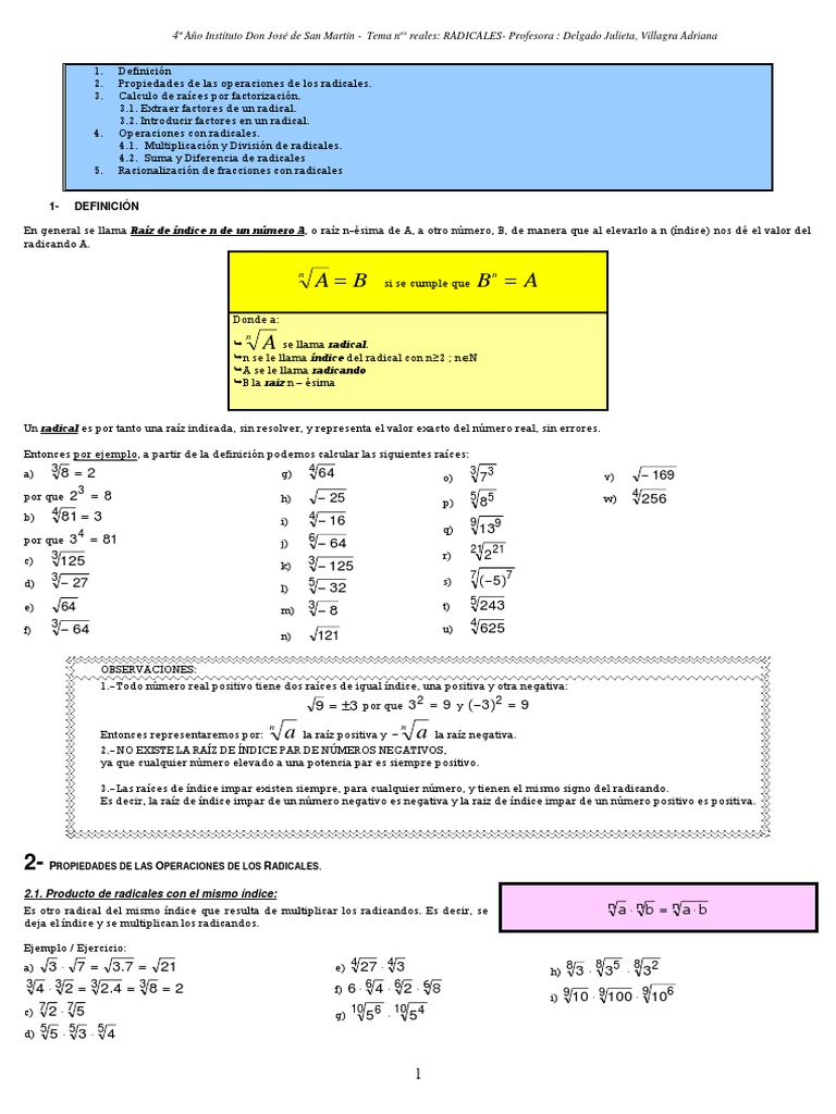 4.1. Multiplicación y División de radicales.