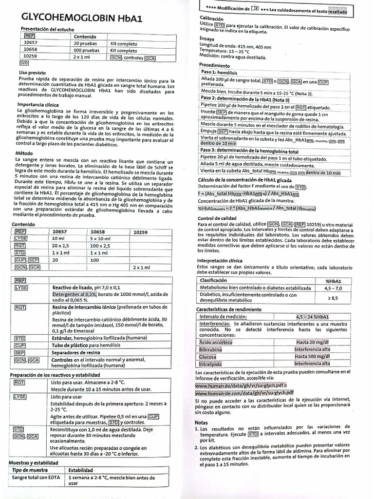 Feactivos de GLYCOHEMOGLOBIN HbA han sido disehados para