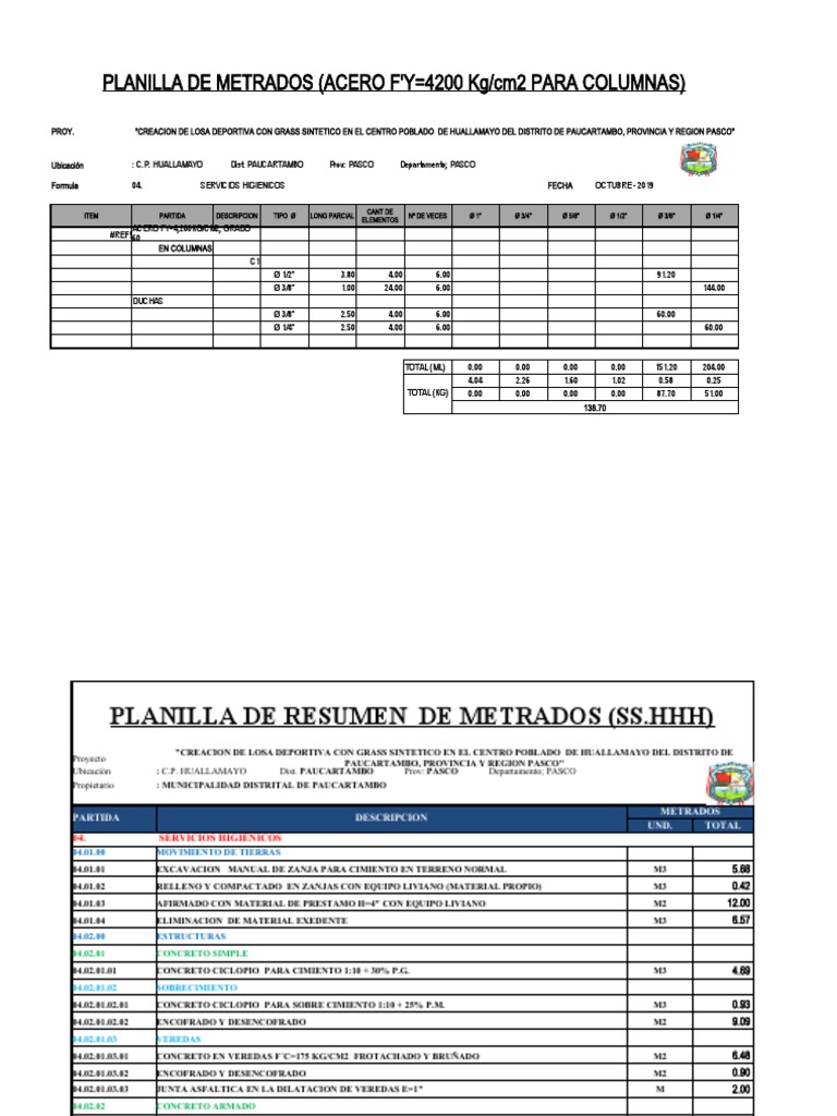 PROY. "CREACION DE LOSA DEPORTIVA CON GRASS SINTETICO EN EL CENTRO POBLADO DE HUALLAMAYO DEL DISTRITO DE PAUCARTAMBO, PROVINCIA Y REGION PASCO"
