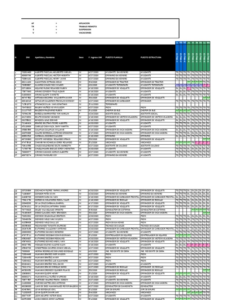 ZEVALLOS HUAMAN MOISES PEDRO M 4/27/2023 OPERADOR DE EXCAVADORA