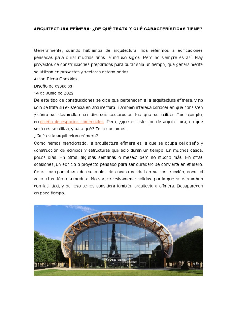 ocasiones, un edificio o proyecto pensado para ser duradero se convierte en efímero.