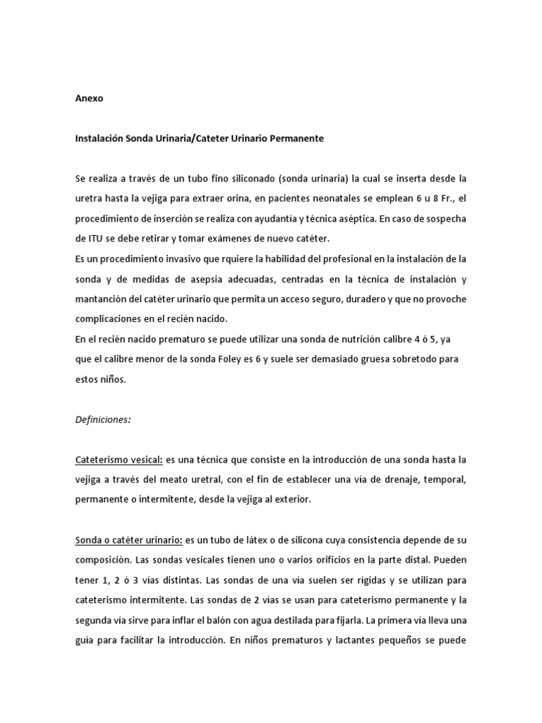 mantanción del catéter urinario que permita un acceso seguro, duradero y que no provoche