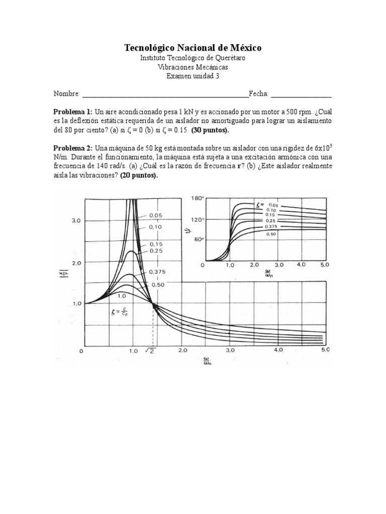 Problema 2: Una máquina de 50 kg está montada sobre un aislador con una rigidez de 6x105