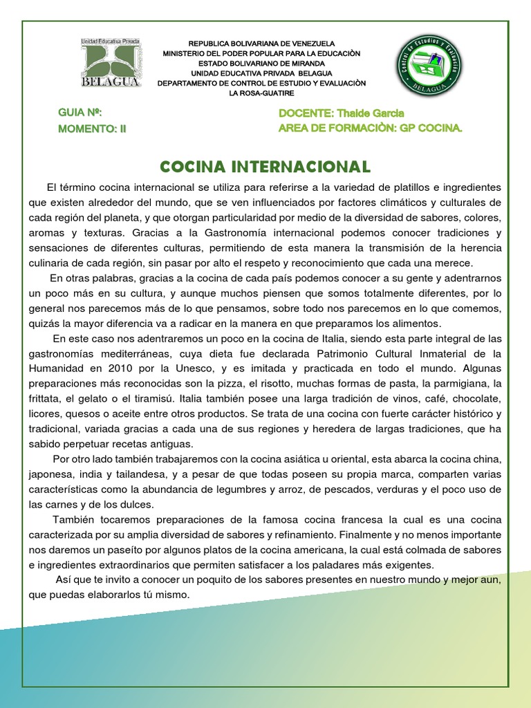 El término cocina internacional se utiliza para referirse a la variedad de platillos e ingredientes