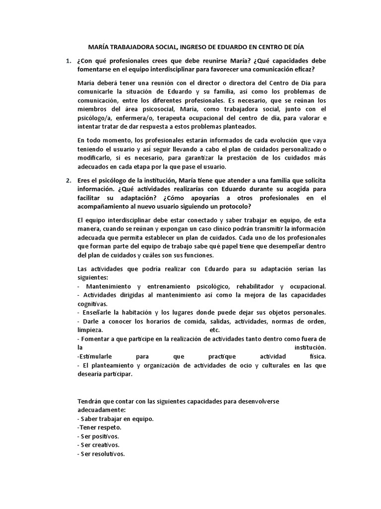 1. ¿Con qué profesionales crees que debe reunirse María? ¿Qué capacidades debe