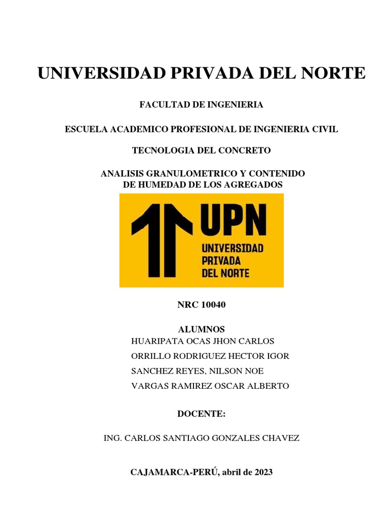 propiedades físicas de agregados o áridos existentes en CAJAMARCA, para ser