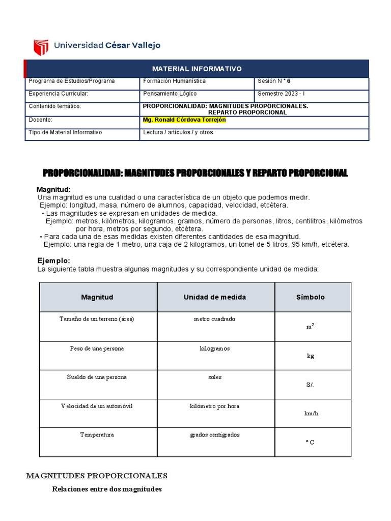 Contenido temático: PROPORCIONALIDAD: MAGNITUDES PROPORCIONALES.