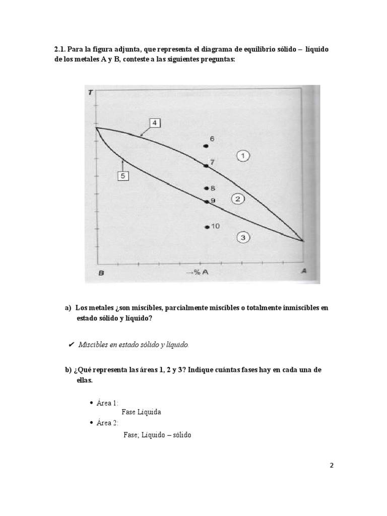 2.3. Dado el diagrama de fases sólido – líquido de la figura 5 para las sustancias A y