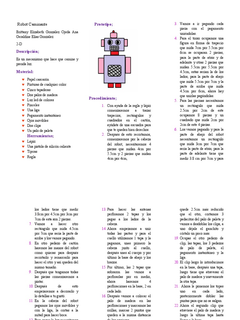 11. En la cabeza del robot palo de madera en las puntas para que no se salgan.