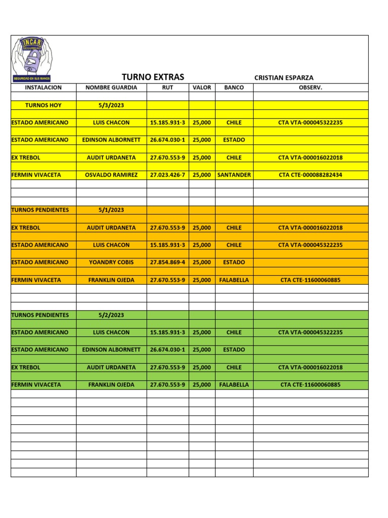 TURNO EXTRAS CRISTIAN ESPARZA