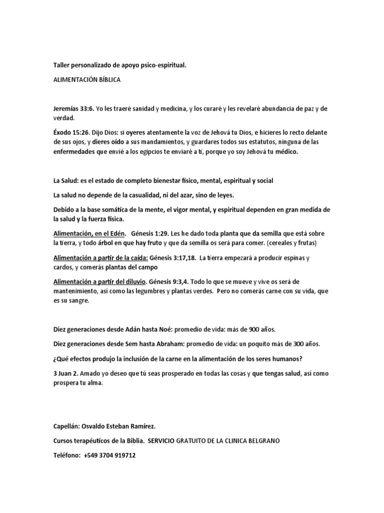 Cursos terapéuticos de la Biblia. SERVICIO GRATUITO DE LA CLINICA BELGRANO