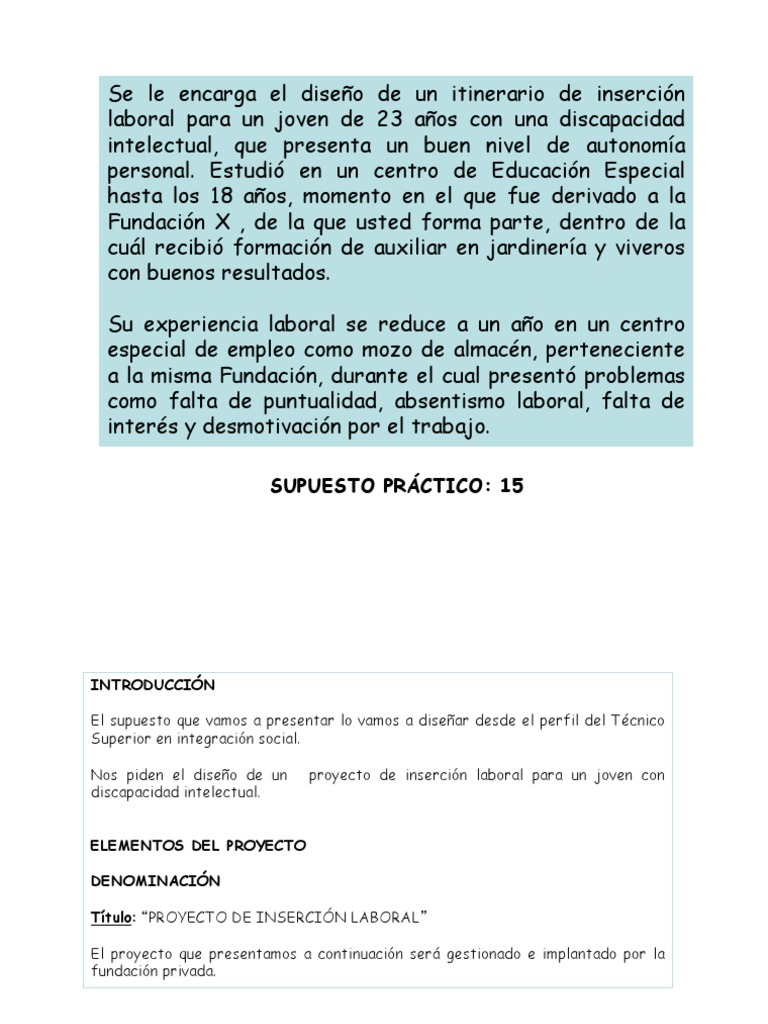 Nos piden el diseño de un proyecto de inserción laboral para un joven con