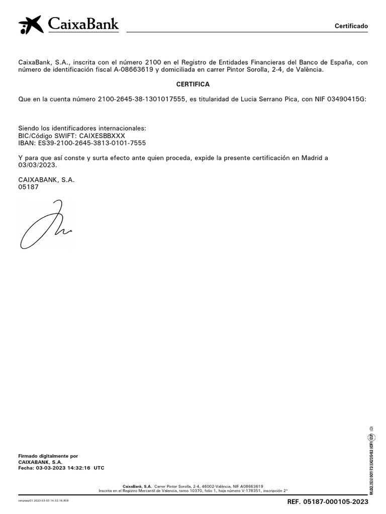 CaixaBank, S.A. Carrer Pintor Sorolla, 2-4, 46002-València, NIF A08663619