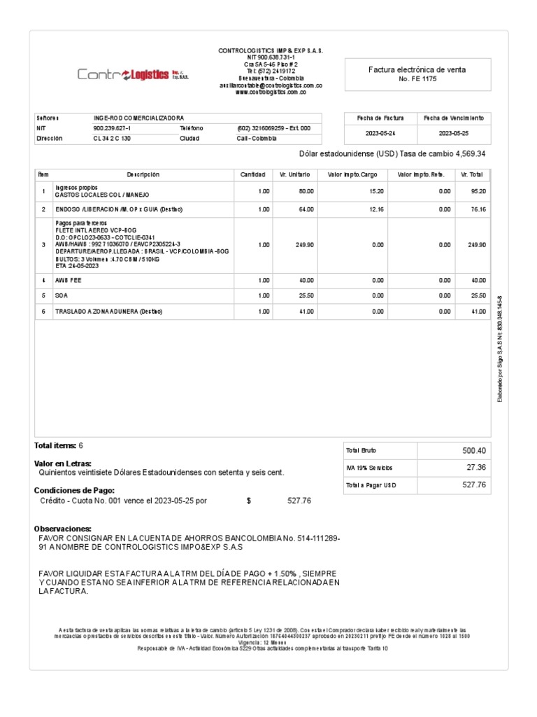91 A NOMBRE DE CONTROLOGISTICS IMPO&EXP S.A.S