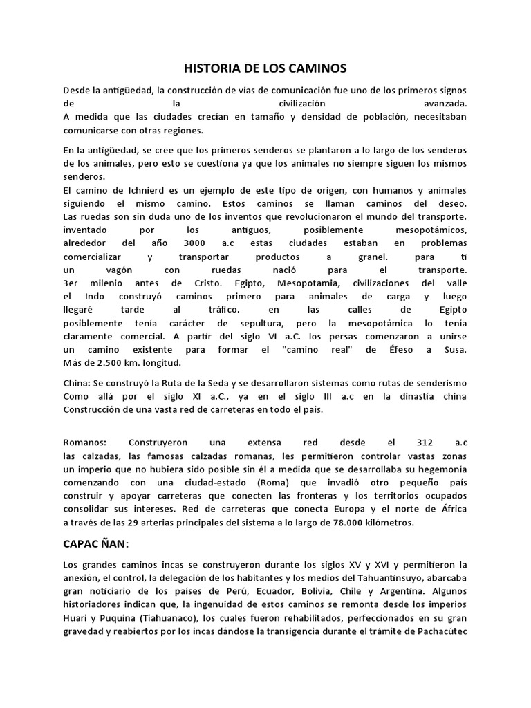 historiadores indican que, la ingenuidad de estos caminos se remonta desde los imperios