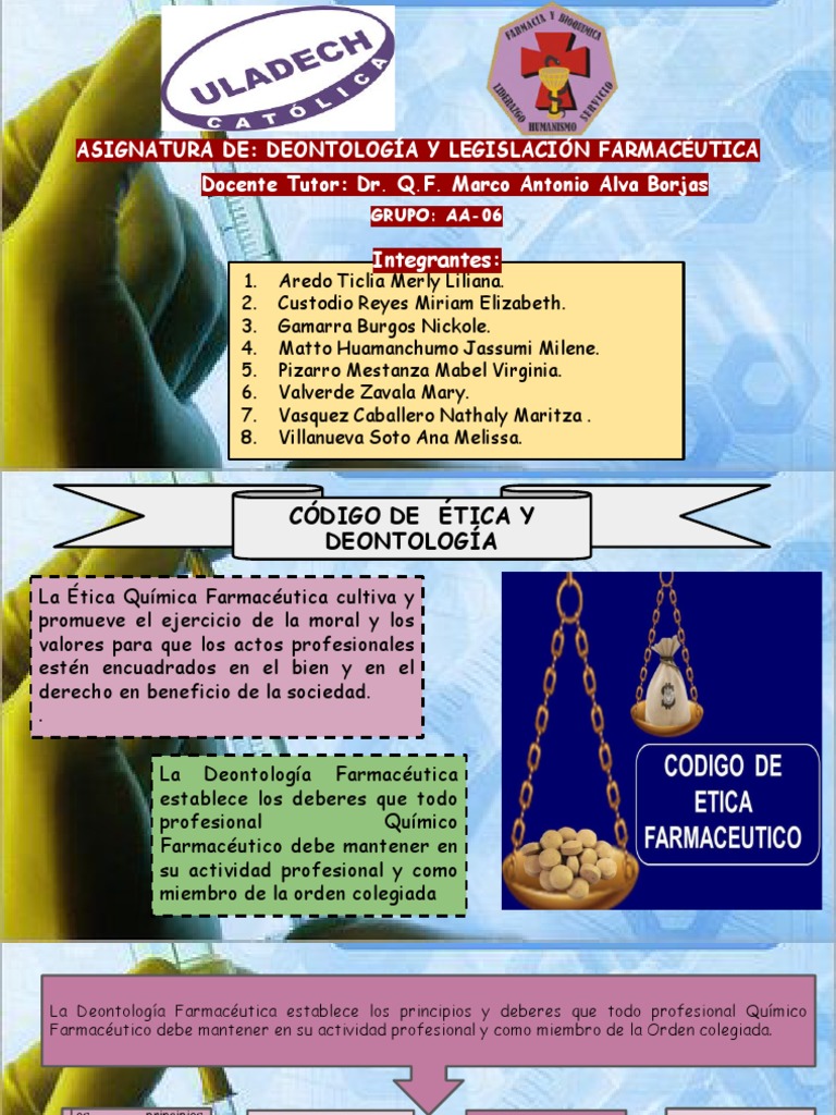 La Deontología Farmacéutica establece los principios y deberes que todo profesional Químico