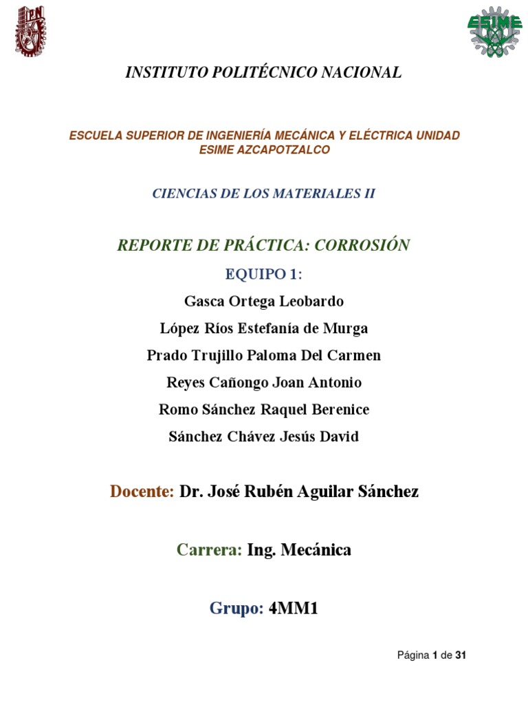 REPORTE DE PRÁCTICA: CORROSIÓN