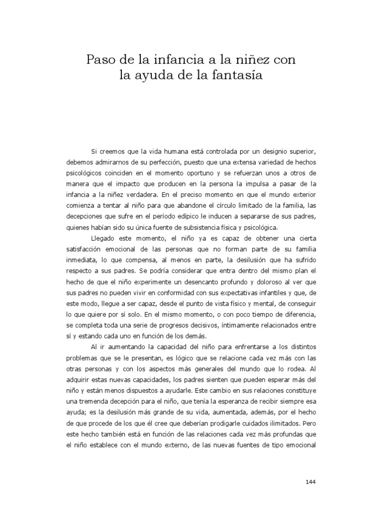 infancia a la niñez verdadera. En el preciso momento en que el mundo exterior