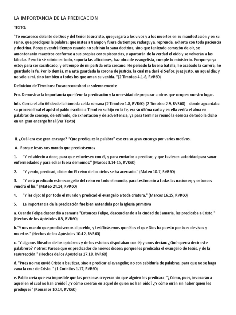 22.12, RVR60) La predicación y su importancia para hoy