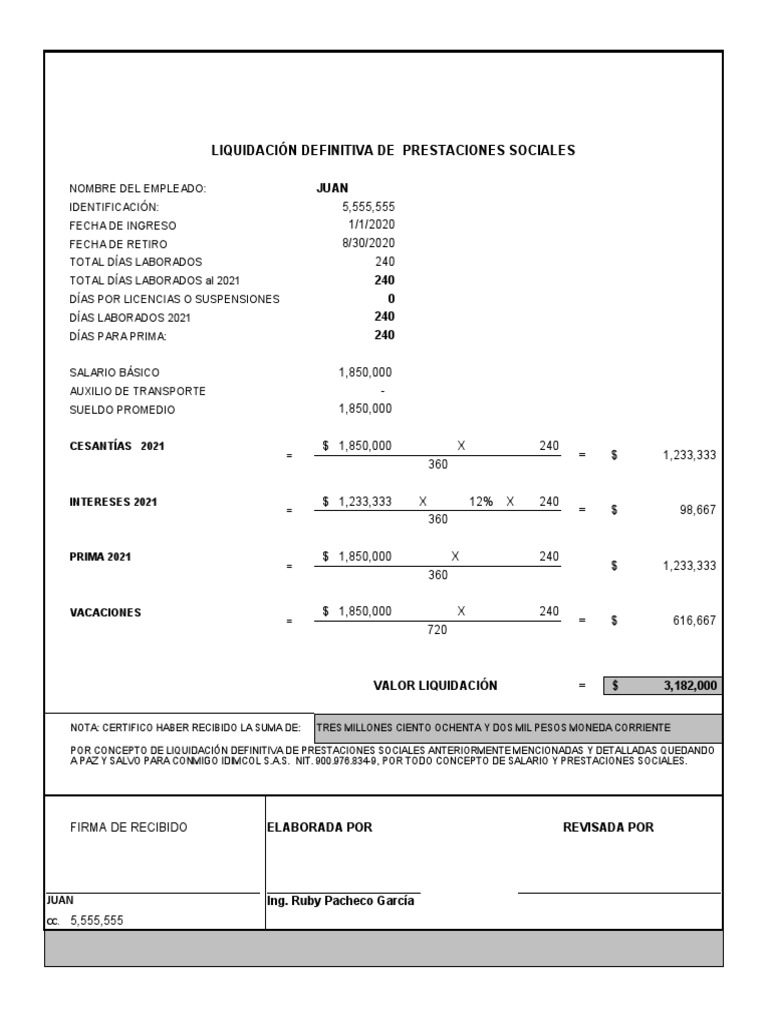 LIQUIDACIÓN DEFINITIVA DE PRESTACIONES SOCIALES