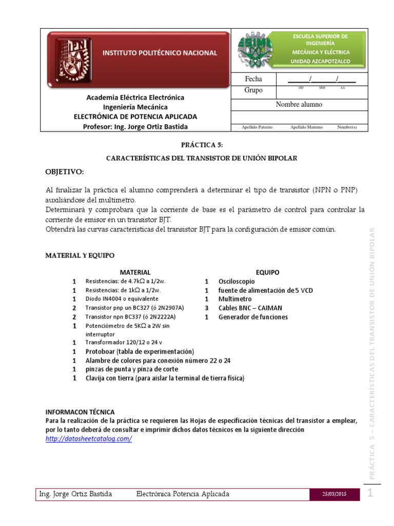PRÁCTICA 5 – CARACTERÍSTICAS DEL TRANSISTOR DE UNIÓN BIPOLAR
