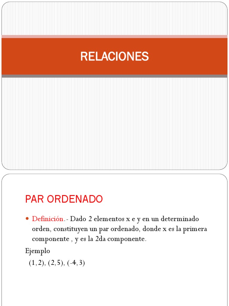 Cabe indicar que un par ordenado (a , b) pertenece a la