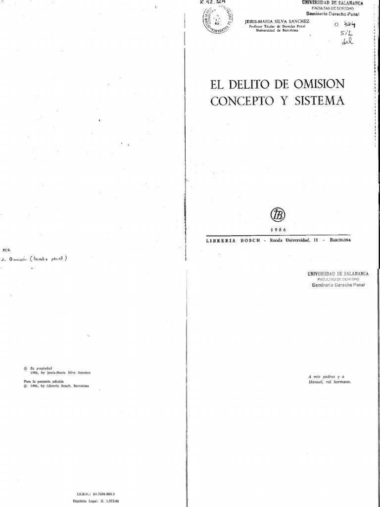 RÓDIG, J . : Die Denkform der Altemative in der Jurisprudenz. Berlin-Heidelberg- SÁNCHEZ TEJERINA, I.: Teoría de los delitos de omisión. Madrid 1918.