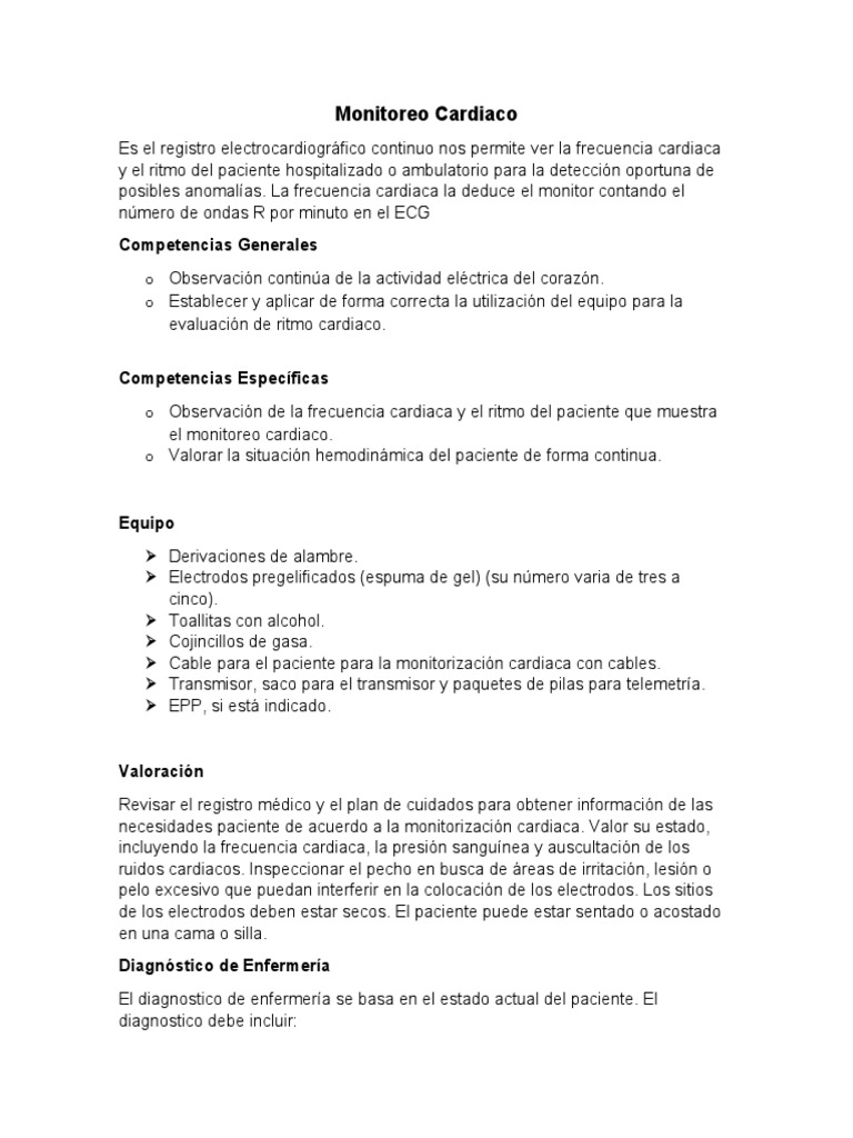 el monitoreo cardiaco.