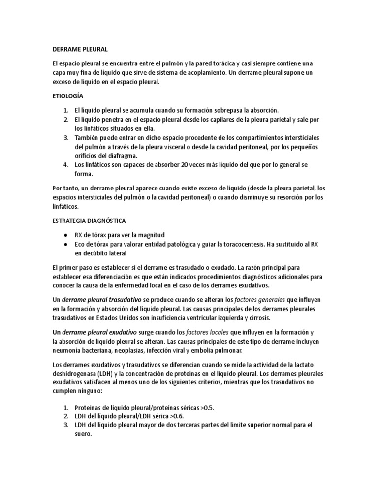 deshidrogenasa (LDH) y la concentración de proteínas en el líquido pleural. Los derrames pleurales
