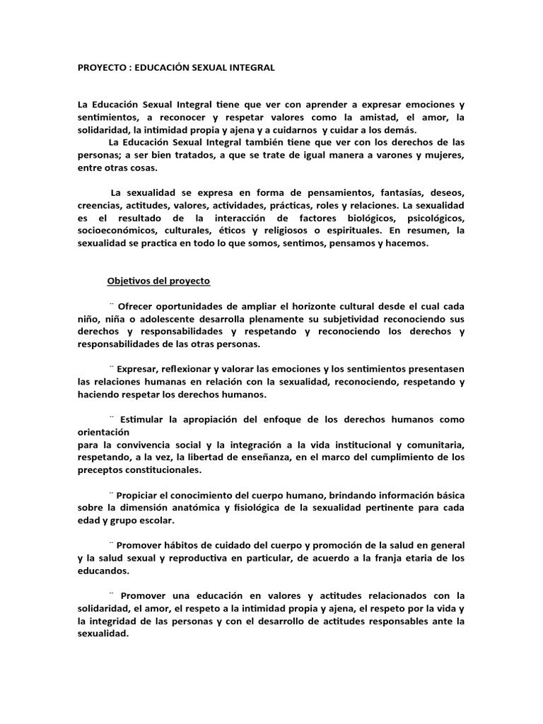 PROYECTO : EDUCACIÓN SEXUAL INTEGRAL