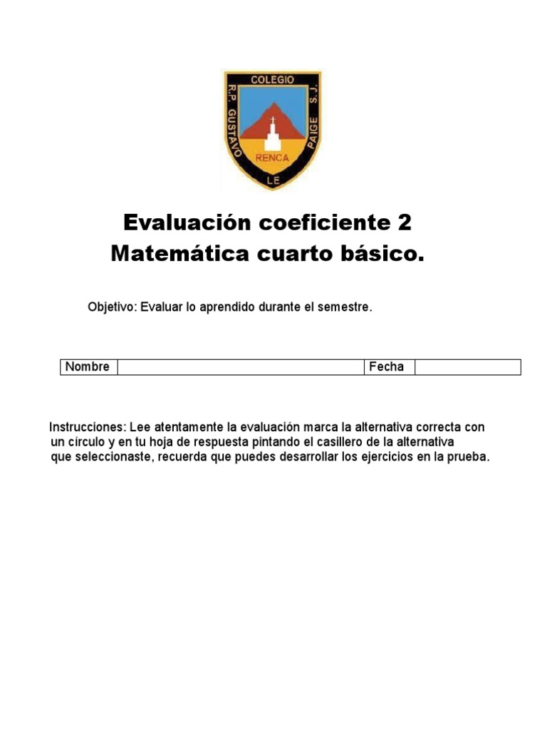 Instrucciones: Lee atentamente la evaluación marca la alternativa correcta con