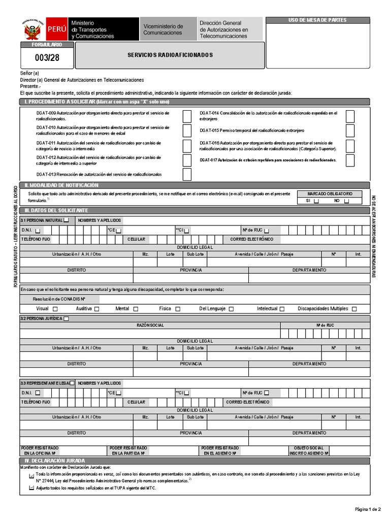 1. Formulario para uso en los trámites de servicios de radioaficionados.