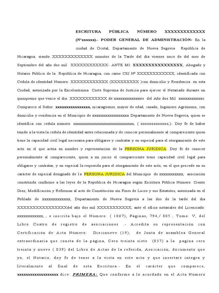 (Nºxxxxxx).- PODER GENERAL DE ADMINISTRACIÓN- En la