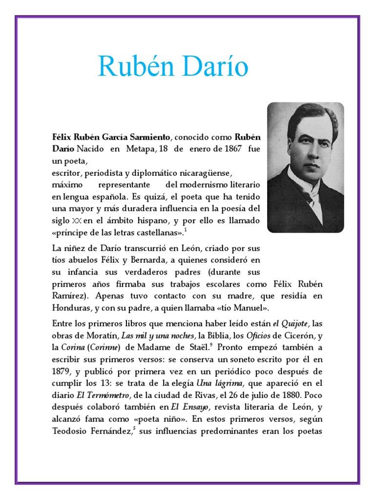 Darío Nacido en Metapa, 18 de enero de 1867 fue